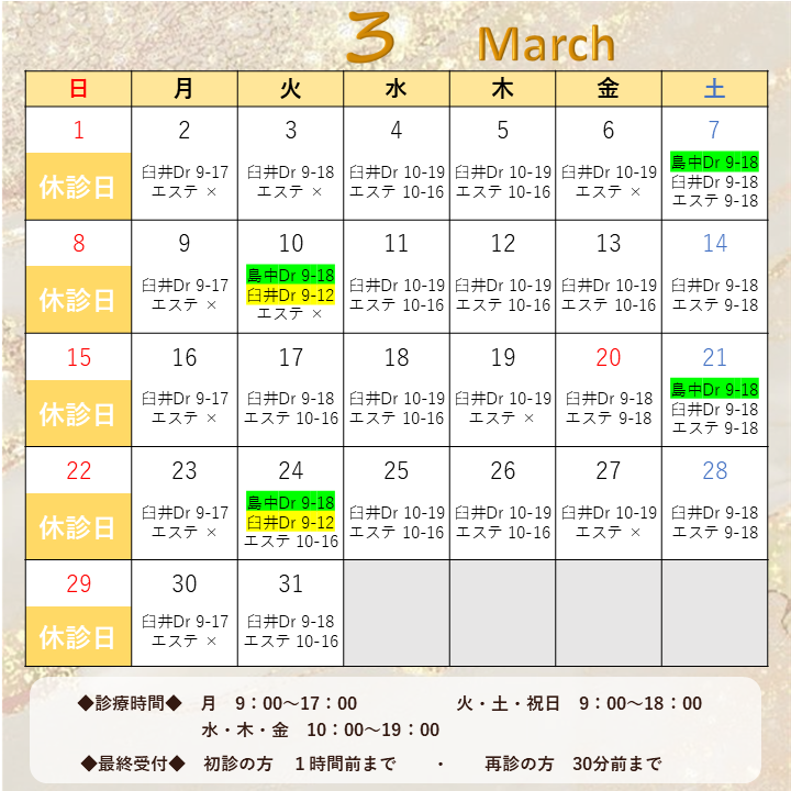 🍑3月の診療カレンダー🍑